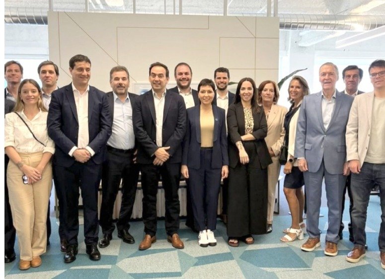 “El objetivo principal es elaborar una agenda de temas tecnológicos para Argentina. La actividad incluye la visita a la sede de Tools For Humanity (Worldcoin Project) en San Francisco”, publicó en X. En la foto, se puede ver a la jefa comunal quilmeña.
