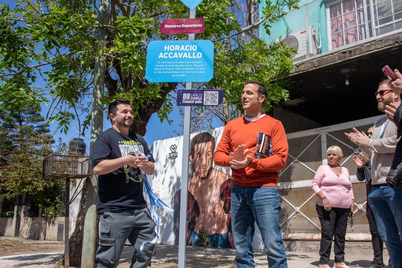 El intendente de Lanús Julián Álvarez inauguró el Circuito Histórico y Turístico, en el marco del 80° aniversario de la autonomía del partido. Conformado por 40 puntos distribuidos en diferentes barrios de la ciudad, la actividad se desarrolló en la puerta de la casa del boxeador y campeón del mundo, Horacio Accavallo, junto a su familia y afectos.