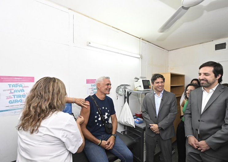 El gobernador Axel Kicillof encabezó este martes en el Hospital “Rodolfo Rossi” de la ciudad de La Plata el inicio de la campaña provincial de vacunación contra el dengue, junto al ministro de Salud, Nicolás Kreplak; el intendente Julio Alak; y la directora ejecutiva de la institución, Cecilia Jaschek.