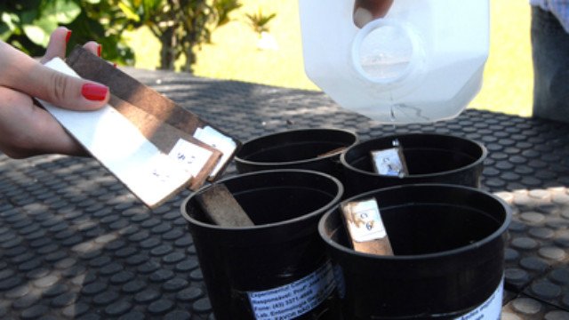Las ovitrampas son dispositivos que se colocan en lugares oscuros y sombreados, fuera del alcance de los niños y animales domésticos. Se trata de recipientes negros que contienen agua y una madera húmeda ubicada de manera vertical, que atrae a los mosquitos.