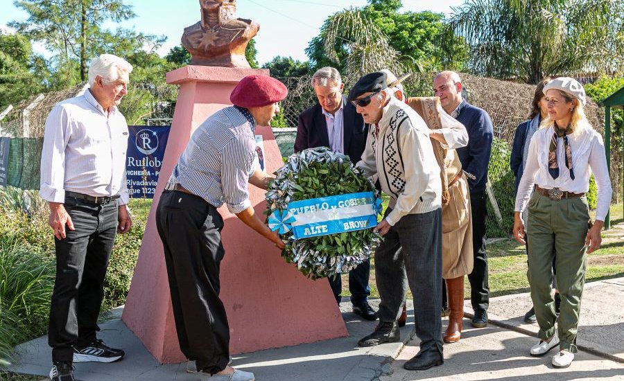 Allí, el jefe comunal junto a vecinos y funcionarios del Ejecutivo y el Legislativo municipal, colocó una ofrenda floral en el marco de la fecha Patria que recuerda el 179° aniversario de la Batalla de la Vuelta de Obligado en la que las fuerzas argentinas se enfrentaron en inferioridad de condiciones a una armada de buques anglo-franceses para defender el territorio sobre nuestros ríos.