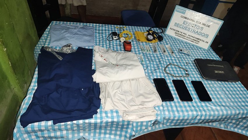 Gracias a la colaboración del chofer del vehículo, se obtuvieron datos clave que permitieron localizar y aprehender a la cuidadora, argentina, de 42 años. Durante los allanamientos se secuestraron una notebook, tres teléfonos celulares, indumentaria utilizada para tareas de enfermería (entre ellos un ambo, un estetoscopio, un tensiómetro y jeringas) y varios accesorios de bijouterie.