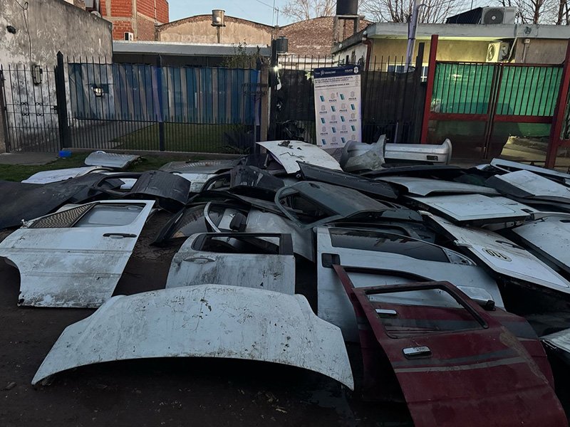 Una vez iniciada la investigación, los oficiales requisaron el lugar donde encontraron: 11 espejos retrovisores, 14 bocinas, 27 ópticas, 2 volantes, 5 tableros instrumentales, 6 levanta vidrios, 1 torpedo, 39 puertas, 12 capots, 6 portones traseros, 10 paragolpes, 17 radiadores, 2 techos ventana, 23 accesorios guardabarros, 3 tapas de cilindro y 1 jaula antivuelco.