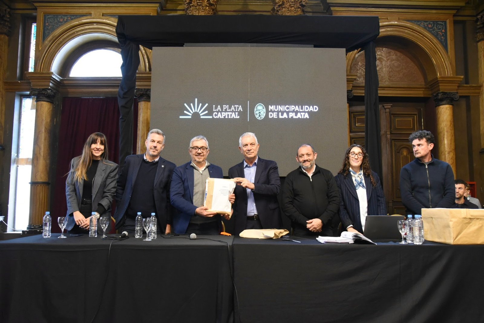 El intendente Julio Alak y el subsecretario de Educación bonaerense, Pablo Urquiza, realizaron la apertura de sobres de la licitación para la segunda etapa del plan de restauración y puesta en valor de escuelas de la ciudad.
