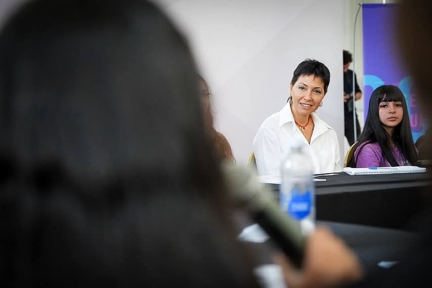 “Ustedes son una comunidad educativa, forman parte de algo súper importante, y a la hora de gobernar tenemos que saber qué piensan, qué quieren, qué necesitan, qué critican, porque si ustedes participan, se involucran. Disputen desde el respeto, no desde el odio, la violencia o el insulto. La confrontación de ideas de los jóvenes desde el respeto y los argumentos, es la base para la construcción de un país mejor”, destacó Mayra, acompañada por la secretaria de Niñez y Desarrollo Social, Florencia Di Tullio, y su par de Educación, Culturas y Deportes, Joaquín Desmery.